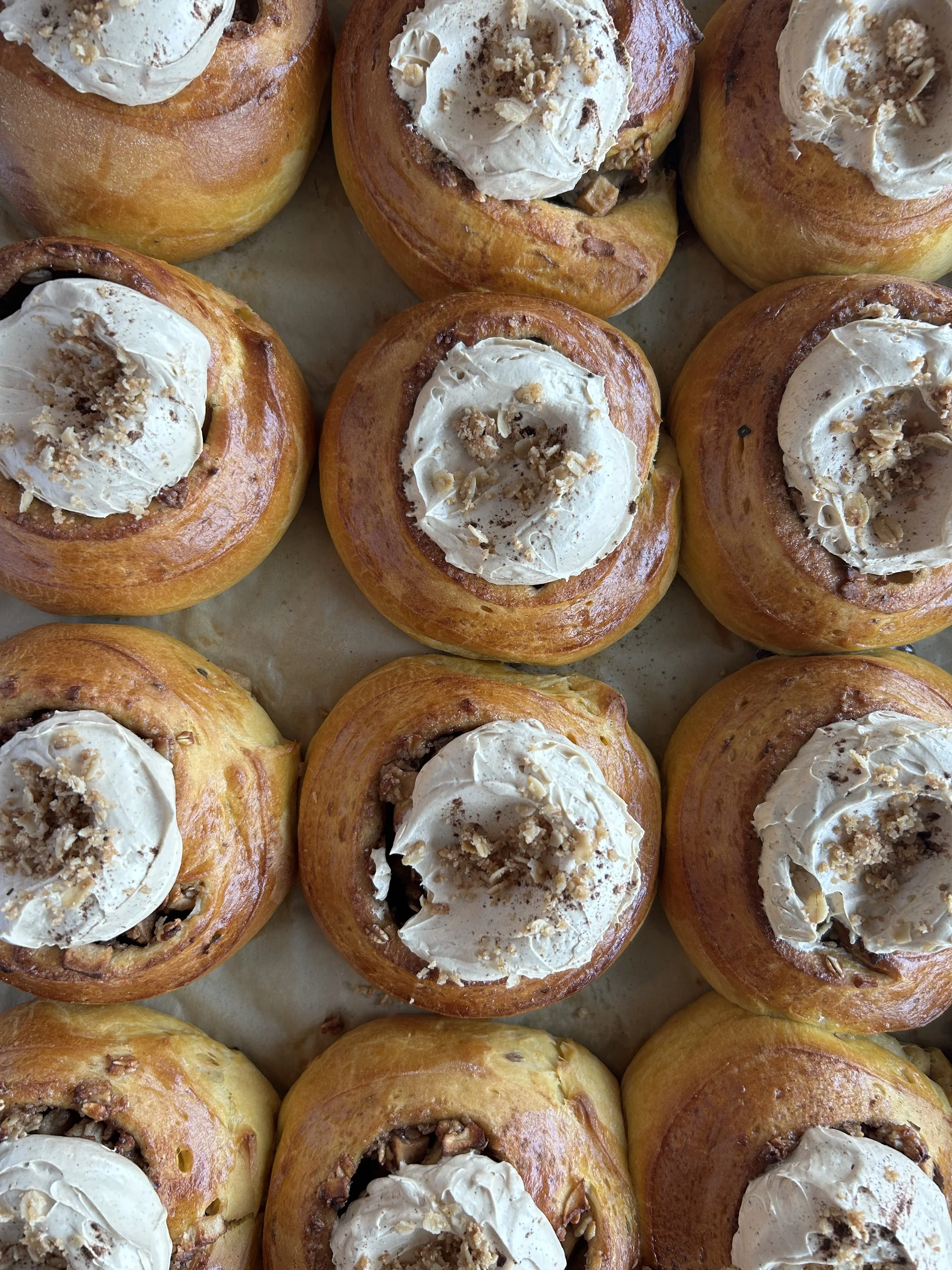 PUMPKIN: BROWN BUTTER PUMPKIN CAKE, MAPLE MILK SOAK, GREEK YOGURT WHIPPED CREAM, CHAI WHIPPED CARAMEL, TORCHED MERINGUE SWISS BUTTERCREAM, PUMPKIN SEED BRITTLE